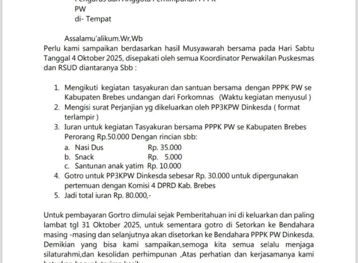 BREBES – Tenaga PPPK kesehatan di Kabupaten Brebes merasa resah dengan adanya surat dari...