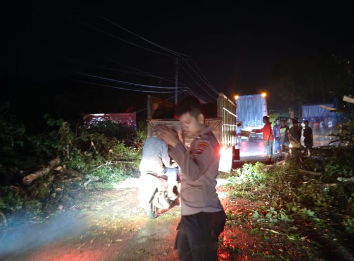 Jajaran Kapolsek Kamang Baru Beserta Masyarakat Bersihkan Pohon Tumbang Akibat Angin Punting Beliung