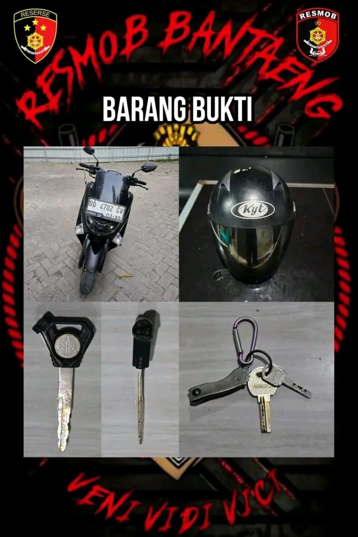 Dengan adanya kejadian tersebut diatas maka Resmob polres bantaeng dipimpin Aipda sabil mendatangi TKP kemudian melakukan pengecekan rekaman CCTV di sekitar TKP. Selanjutnya tim melakukan serangkaian penyelidikan dan mencari informasi dan dan tim mengetahui indentitas dan ciri-ciri, terduga pelaku, Dimana pada saat. melakukan penyelidikan tim mendapat. Informasi bahwa terduga pelaku sedang berada diparkiran Rumah sakit di jalan. Teratai kel. Pallantikang kec. Bantaeng kab. Bantaeng, Sehingga tim Langsung bergerak Menuju ke lokasi yang maksud dan berhasil mengamankan terduga pelaku beserta dengan barang bukti. 1 Unit sepeda motor Yamaha N-Max Warna hitam milik korban SAPI, Selanjutnya Terduga pelaku beserta dengan barang bukti dibawa ke kantor Polres bantaeng Kemudian dilakukan interogasi Awal,