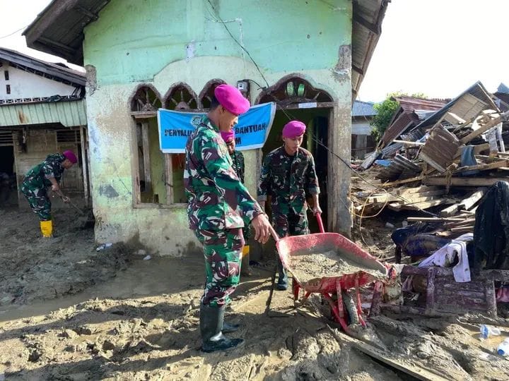 Dukungan alat berat dan perlatan zeni Marinir mempercepat proses rehabilitasi dilapangkan. Di sisi lain, prajurit juga bekerja secara manual, menyusuri setiap sudut wilayah terdampak dengan penuh ketekunan. Sinergi antara kekuatan. Personel dan peralatan tersebut menjadi bukti nyata. Kemanunggalan TNI dengan rakyat dalam menghadapi dan bangkit dari dampak bencana alam.