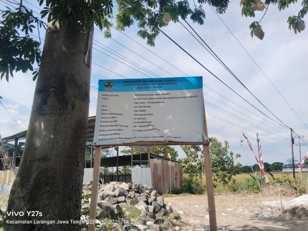 BREBES // buserindonesia.id // Proyek pembangunan rehabilitasi Jembatan Wetan Jubang yang berada di ruas jalan utama Jatibarang-Ketanggungan tepatnya di Desa Slatri, Kecamatan Larangan menuai sorotan. Pasalnya, proyek milik Dinas Pekerjaan Umum Bina Marga dan Cipta Karya Provinsi Jawa Tengah terkesan lemah dalam pengawasan. Hal itu membuat proses pemasangan batu belah untuk pondasi turap jembatan terkesan asal pasang.