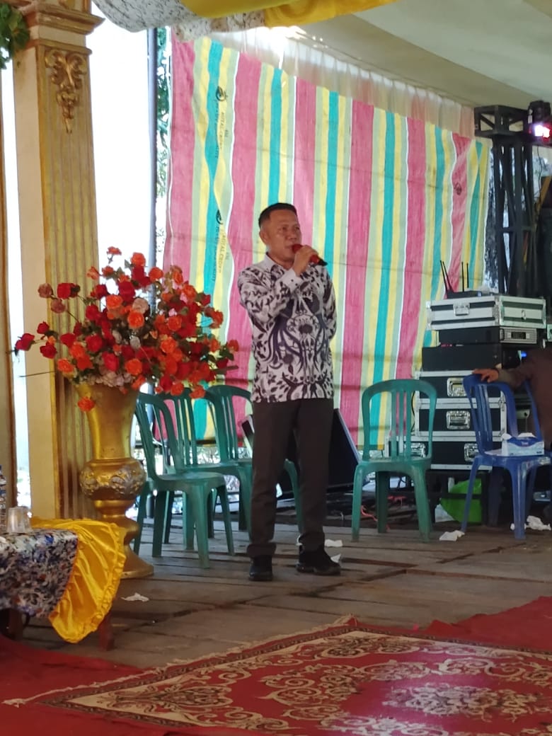 Oknum kades yang berinisial E di kecamatan Rambang Kuang Ogan Ilir Sumatera Selatan masih menyampaikan kata sambutan di acara resepsi pernikahan warga desa ulak segara Minggu 14 September 2025.