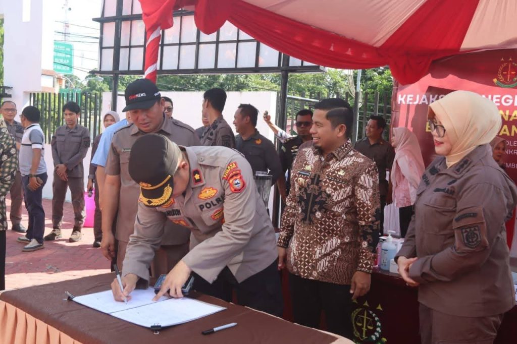 Rangkaian kegiatan dilanjutkan dengan penandatanganan berita acara pemusnahan serta pemusnahan barang bukti secara simbolis oleh para pejabat yang hadir.